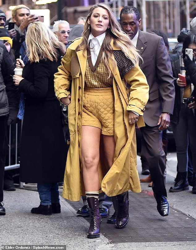 Не виждам защо трябва да си крие краката Блейк, просто сега са малко по-пълни от обичайното за нея. Материята и моделът на панталонките по-скоро са неподходящи.