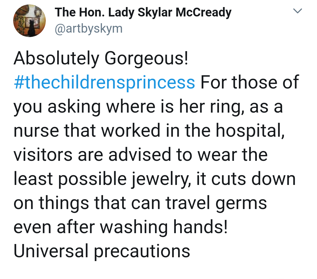 Пишат, че е без пръстен, поради хигиенични причини. Все пак е в болница.