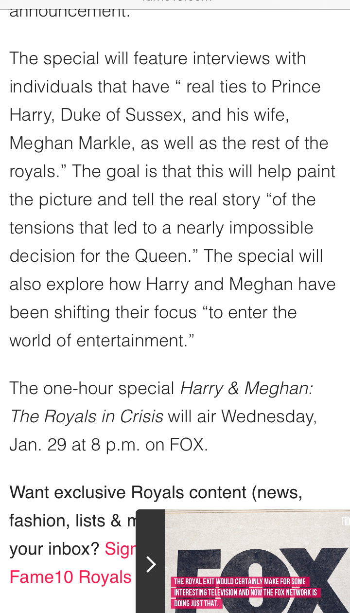Main points of the Fox/TMZ docu on Harry & Meghan (w/o guarantee