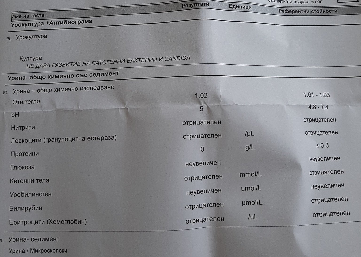 Аз сефте виждам такова изследване за урина...без стойности, а със заключения.