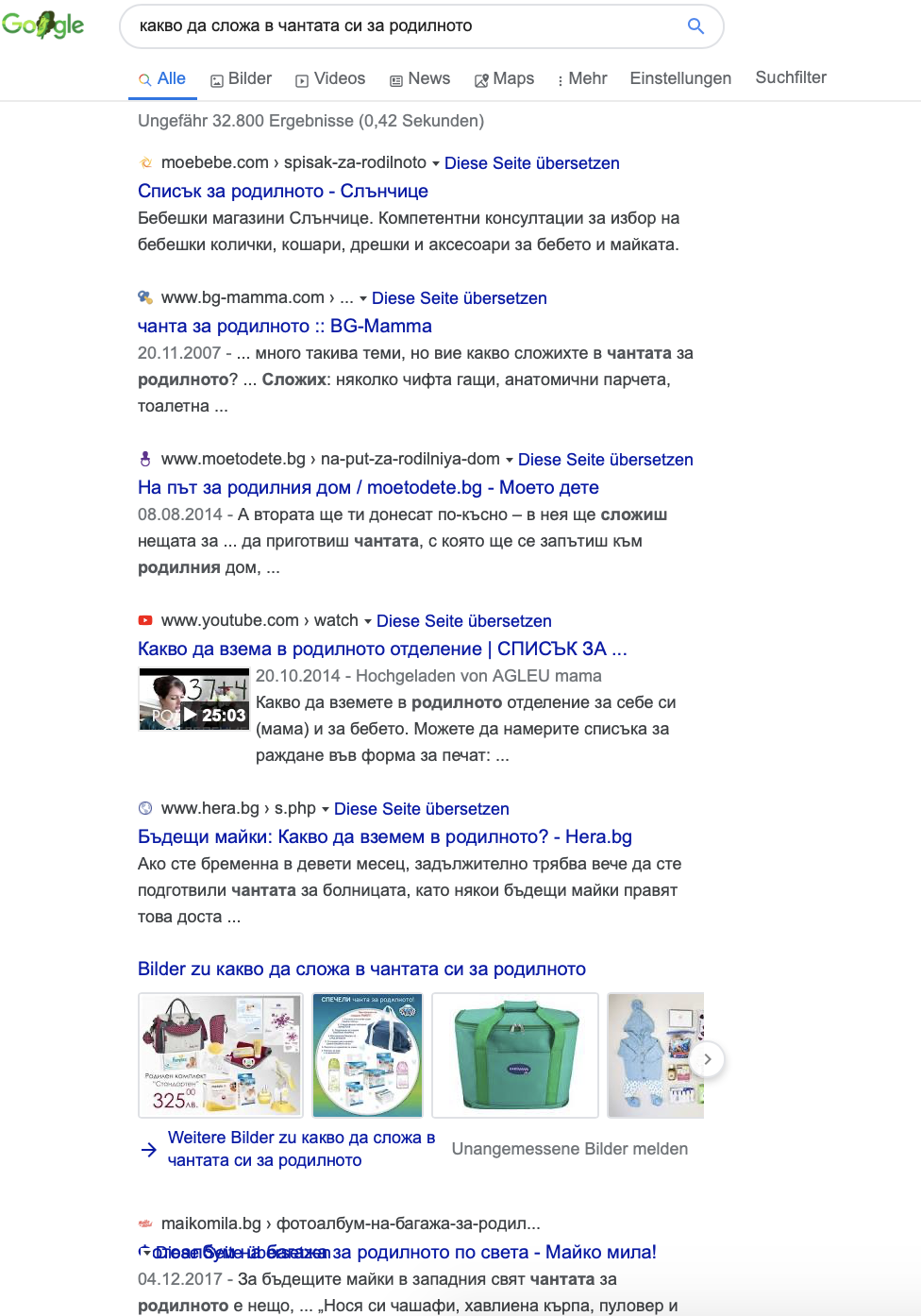 Написах в търсачката "какво да сложа в чантата си за родилното".