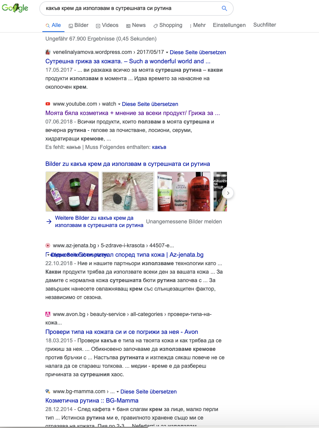 И за финал, реших да попитам търсачката "какъв крем да използвам в сутрешната си рутина".