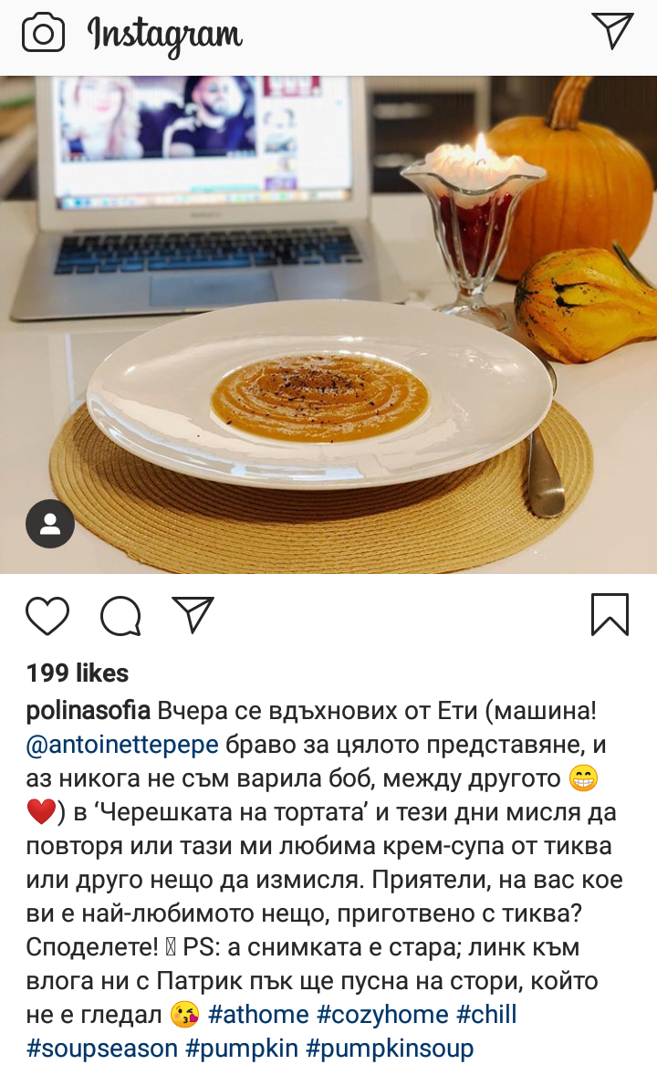 Ели, колкото и да я харесвам, не сподели за участието на Антоанета в Черешката. Ясно, че може би не е имала как да го гледа в Дания, но можеше да постне нещо и да я подкрепи. Правило ми е впечатление, че Антоанета е споделяла сторита в Инстаграм от cookingbuthow профила на Ели.