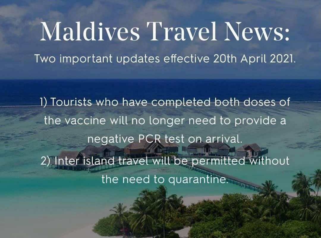 No negative PCR test required for tourists who visit #Maldives two weeks (14 days) after their 2nd dose of COVID19 Vaccine.