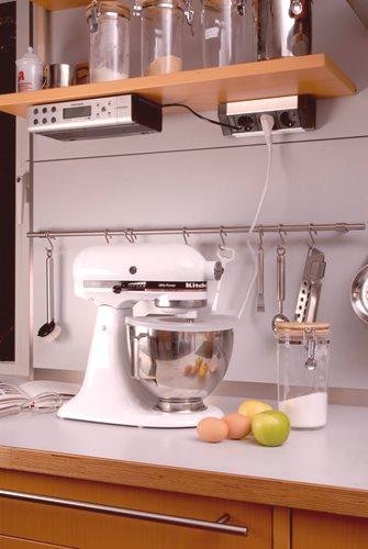 На мен ми харесват тези триъгълните контакти с няколко гнезда - могат да се сложат на дъното на горните шкафове или в ъгъла на гръбчето на кухнята. Те са стационарни, а не подвижни.