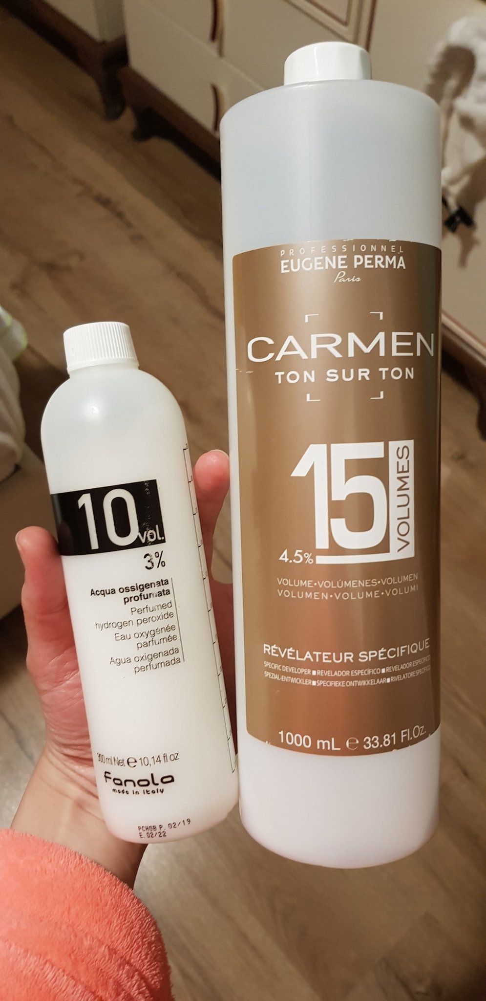 Така. 1:1 се смесват, но няма ли да ти е много това? Защо не пробваш с половин боя и половината от оксиданта, и ако не ти стигне другата част. Аз имах останал оксидант на Юджин Перма от преди, а Фанола си го купих от чужбина, защото нямах друг в момента. Не мисля, че е от особено значение марката, по-скоро колко е силен. Боята ми е 6.1 и виж какъв например ползвам аз. Не мисля, че е задължително да е 6%, получава ми се перфектно и с 3%.