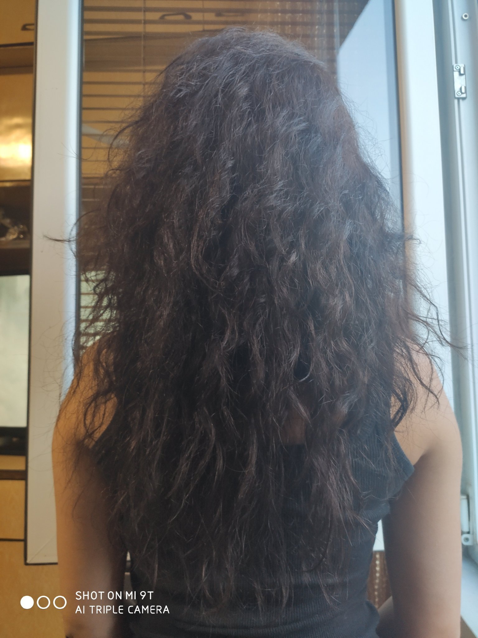 Хм,абсолютно не съм съгласна,че косата е суха като слама,дори не изглежда суха.Няма нито един сух или изпръхнал кичур,а и няма нужда от възстановяване...Много жени биха завидяли на такава коса