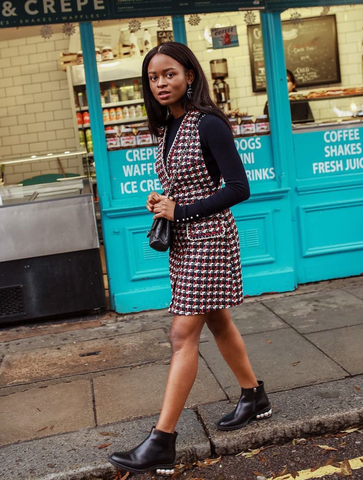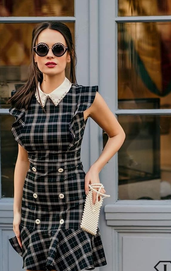 На мен би ми допаднала комбинацията на тази рокля и с двуцветни обувки (не карирани)