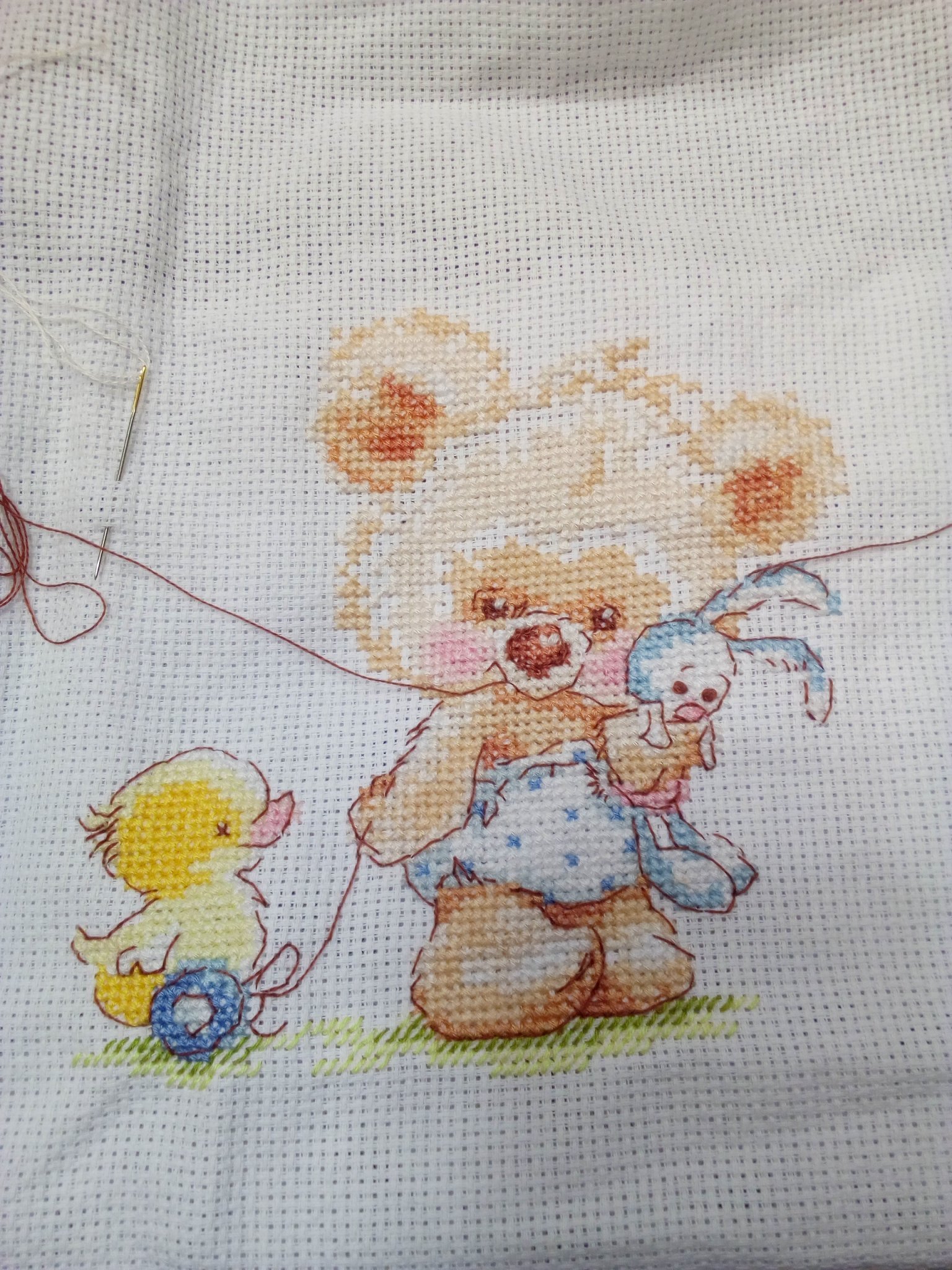 Доволна съм. Дано и на родителите им хареса! Мисля да оставя гоблена в ателие и да пратя майката да си хареса паспарту и рамка за моя сметка. Иначе рискувам да не уцеля предпочитанията. Ноооо...ще убия изненадата. Вие как как мислите?