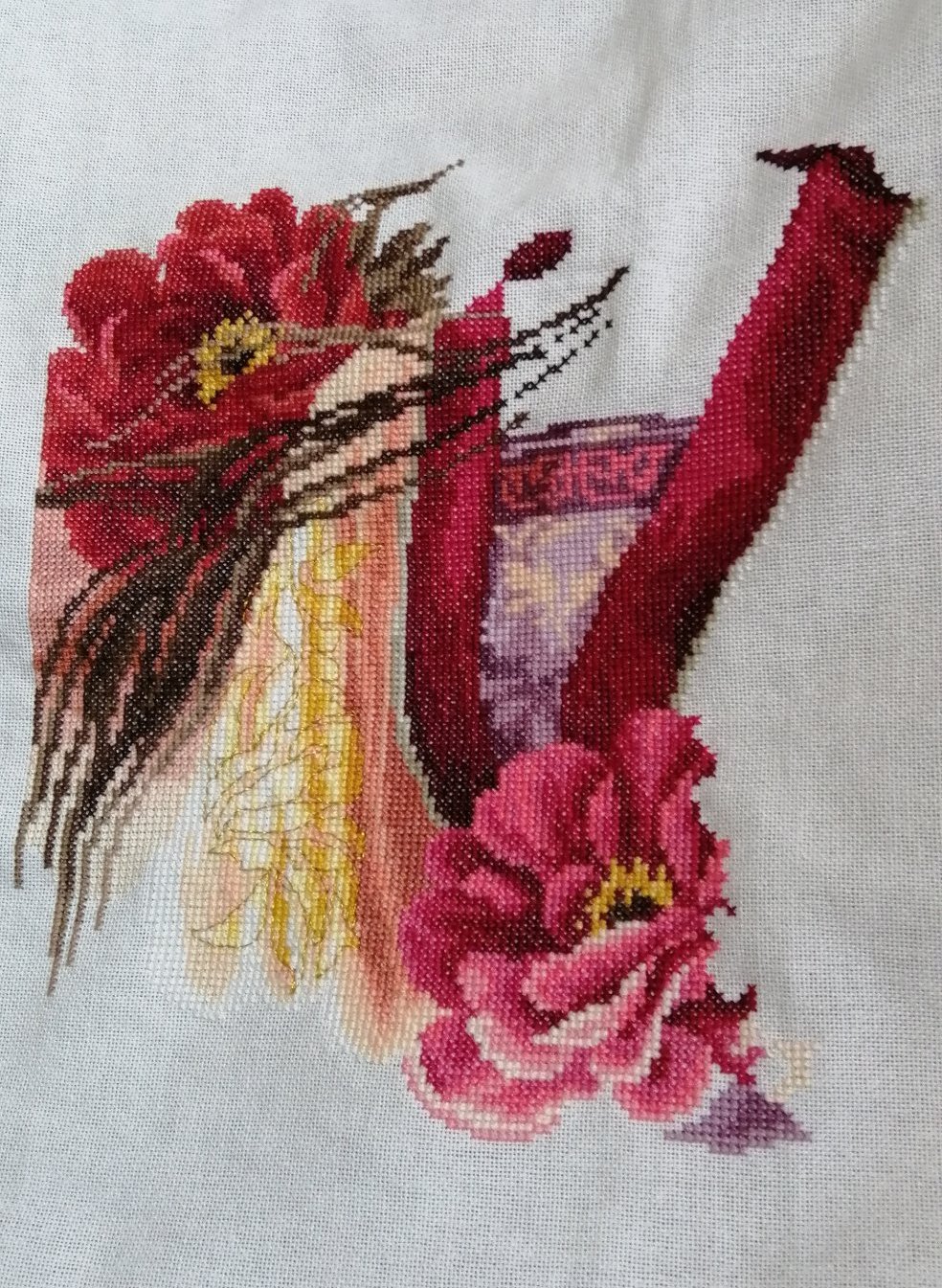 Pyypi, бавно напредвам, така е. От 2015 г. го шия. Някоя и друга събота и неделя, когато ми остане време. За сложен - не е чак толкова, защото схемата е прекрасно направена, а е и 1:4. Сложността идва от безкрайно близките нюанси - 210 цвята е. Шия го само през деня.