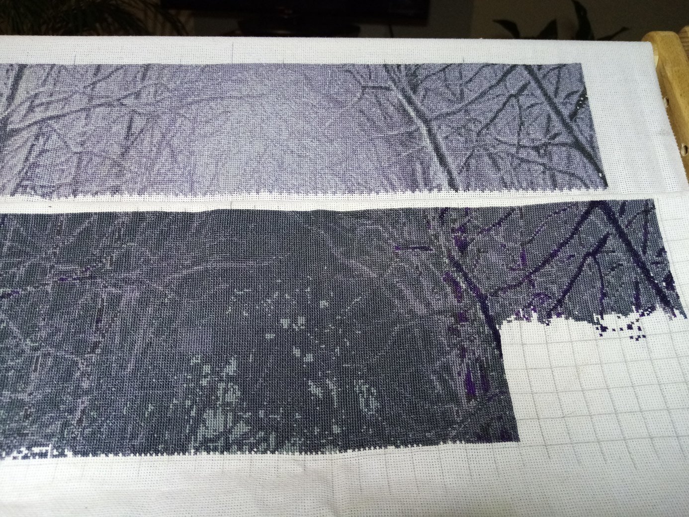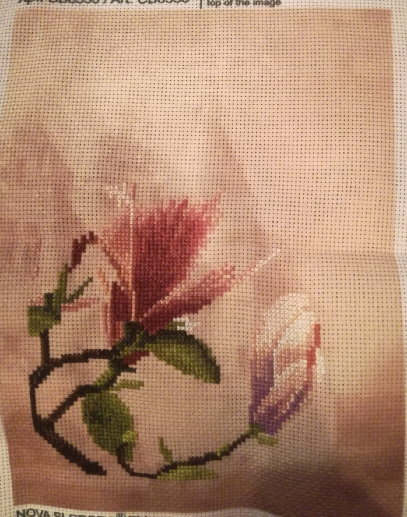 Освен това панамата, която е към гоблена е от старите, които е трябвало да се тропосват по краищата, за да не се разнищват и аз купих нова (тя е доста твърда, но по-лесно се виждат дупчиците, където трябва да се промуши иглата). Предполагам че тя би била по-удобна?