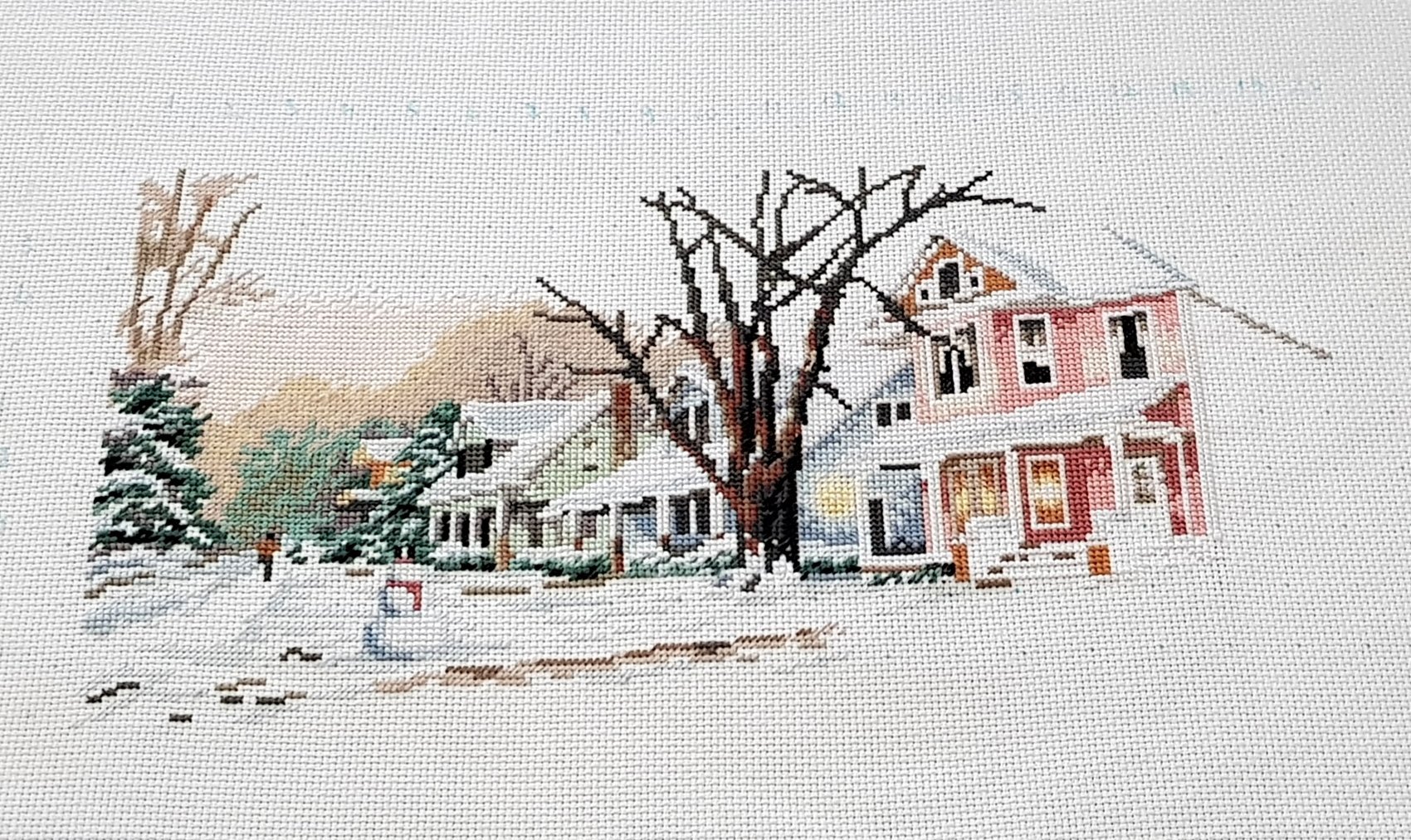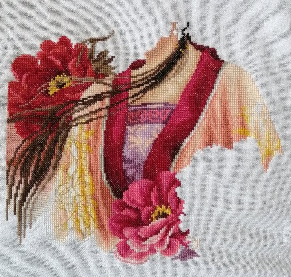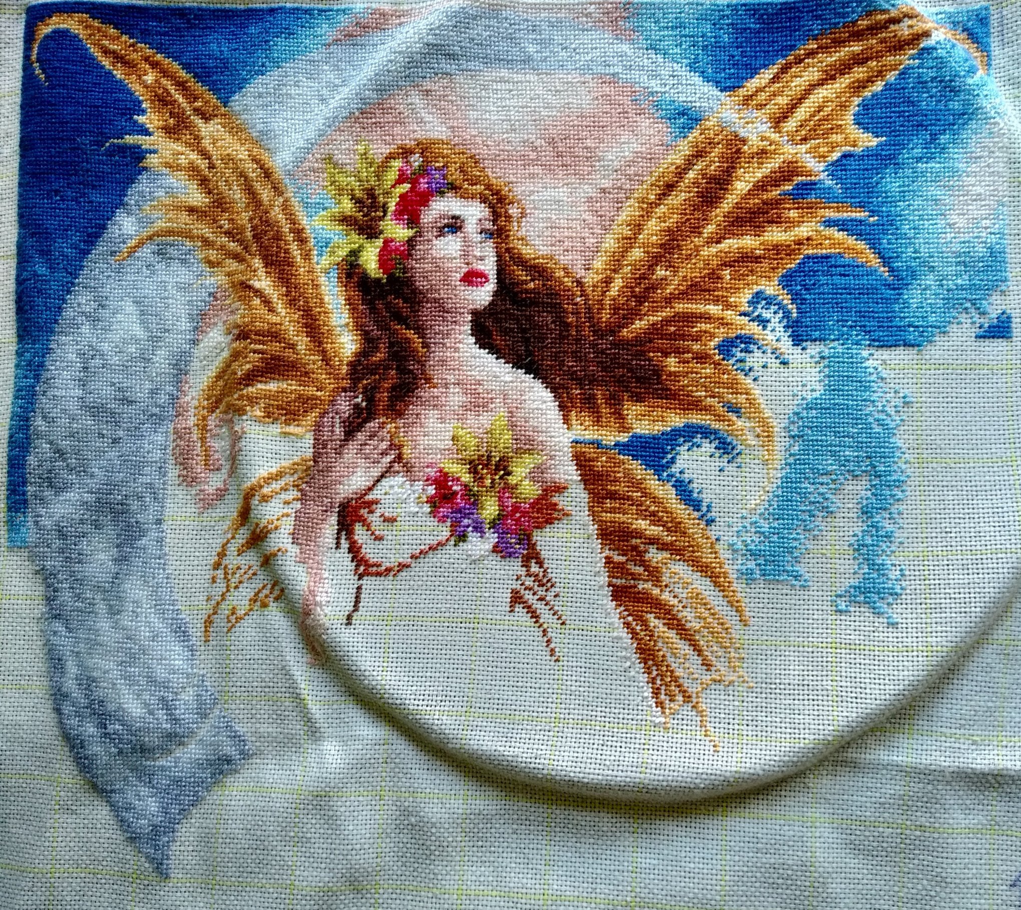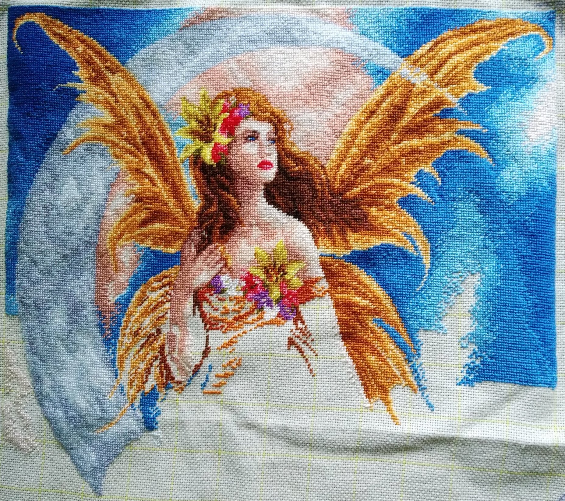 Освен това панамата, която е към гоблена е от старите, които е трябвало да се тропосват по краищата, за да не се разнищват и аз купих нова (тя е доста твърда, но по-лесно се виждат дупчиците, където трябва да се промуши иглата). Предполагам че тя би била по-удобна?