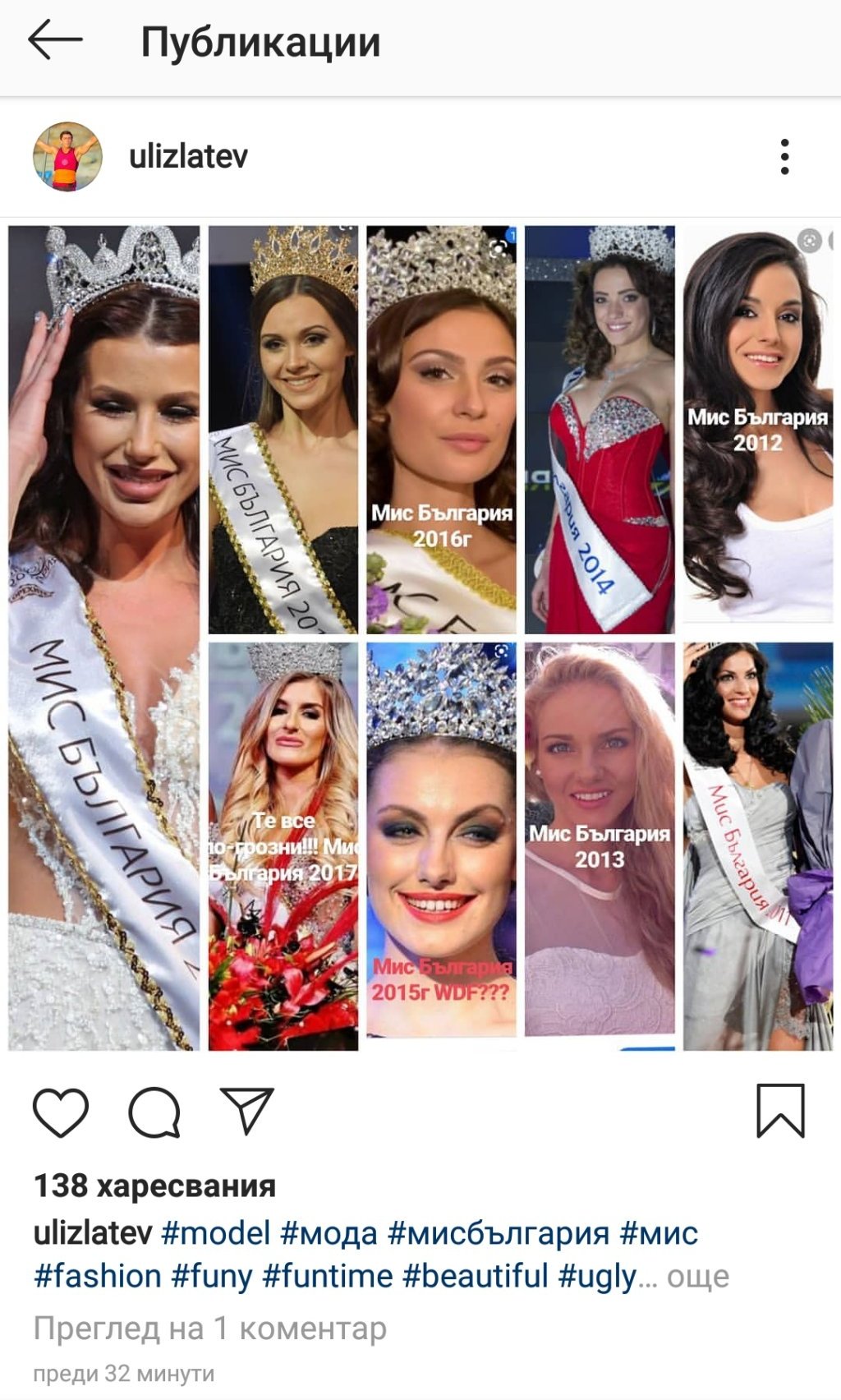 Юлиян е качил на стори Мис Българиите от 2010 г. насам и им е направил разбор Joy