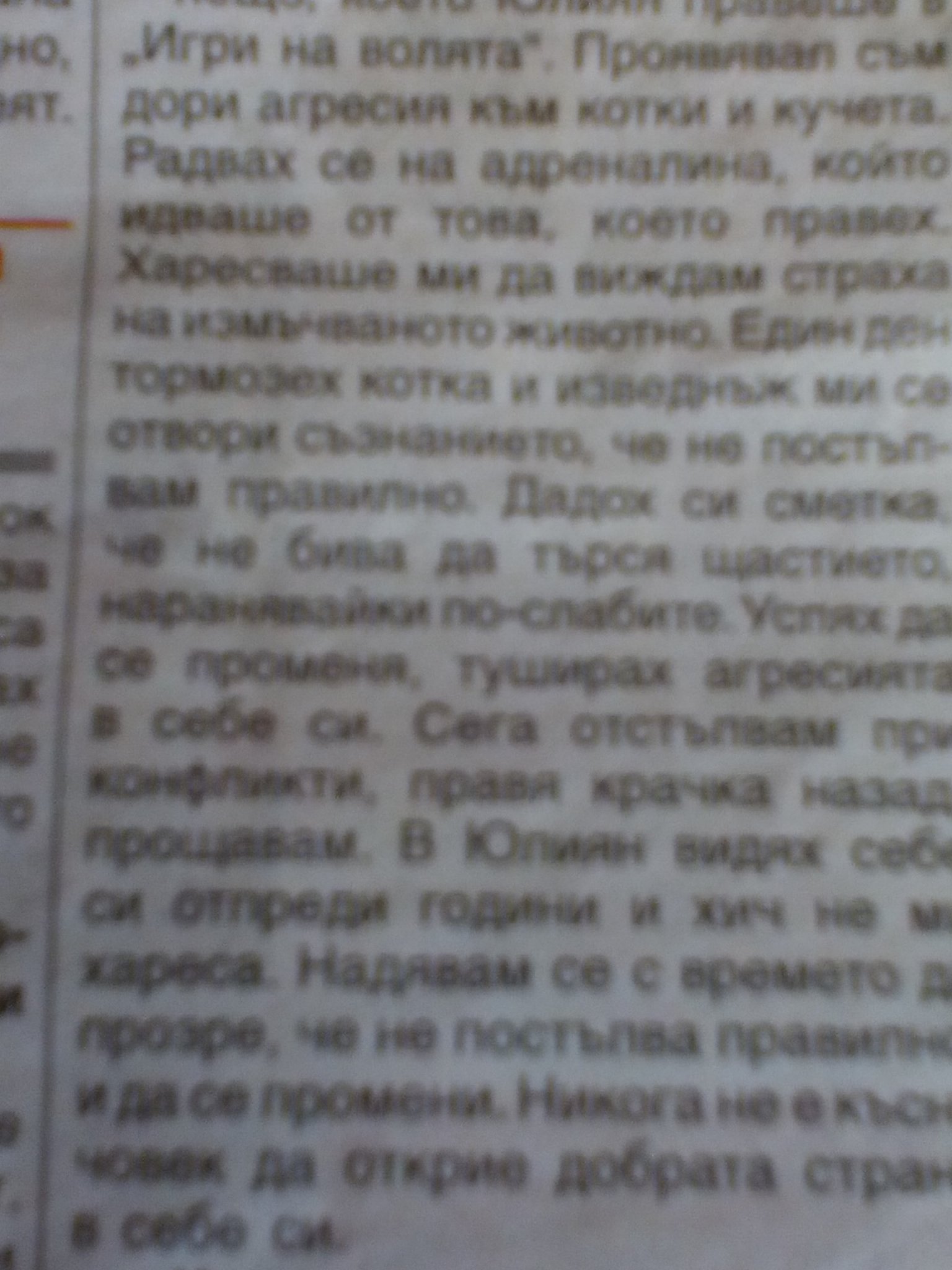 Външно е точно моя тип мъж, ама малко коремчето да стегне, той и в игрите си имаше малко. Но, нищо де...ще му го опростя, все пак съм му фенка и така ще го взема, ама...стара чанта съм , еййй(( На Юлиян си мисля, че му е писнало от жени тип Радостини. Понякога се получава пресищане от интерес и никак не е приятно, може и да не е за вярване, ама знам такива случаи. Юлиян със сигурност не е останал без внимание от жените и му е дошло вече в повече си мисля.