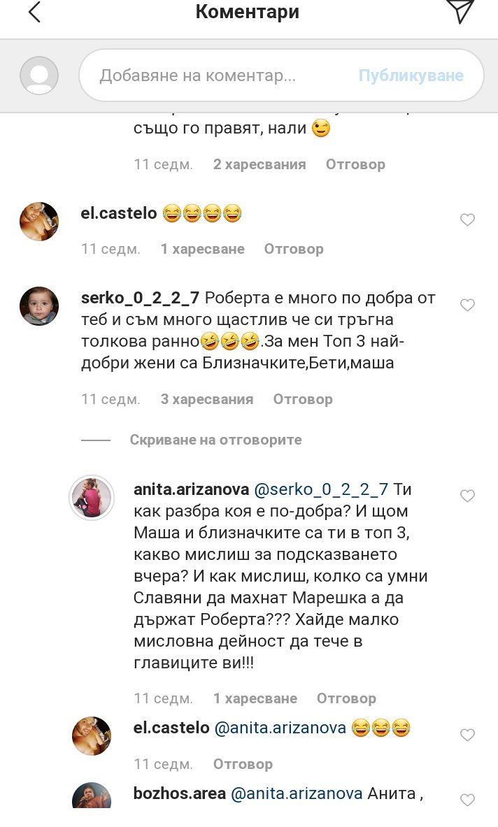 Този зад Анита е 99.99% Добрин, ако е някой от Игрите. Има там един коментар в инста и ако се тръгне от него, се навръзва някаква логика. Друг е въпросът, какво има тя предвид с "моето момче" или както там беше тагнала. Аз например този израз го използвам две секунди, преди да ми се отплесне ръката за шамар към някого.