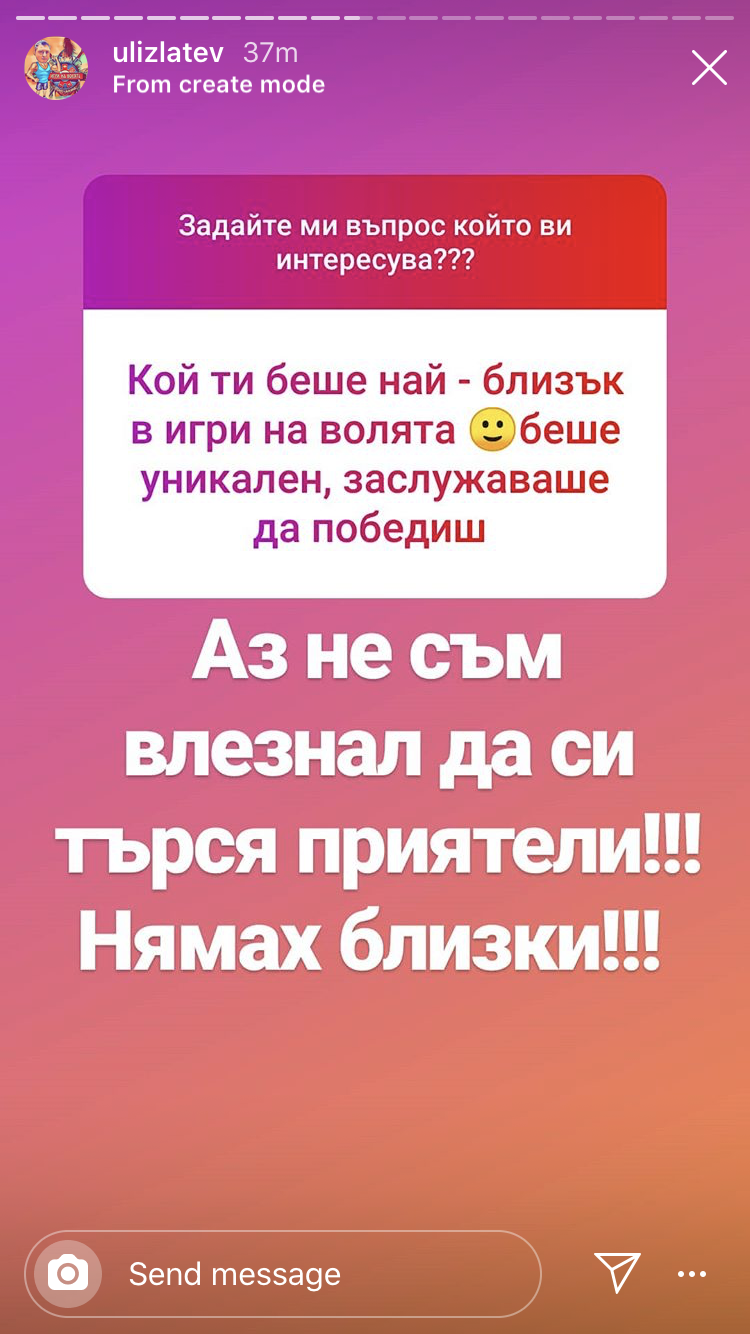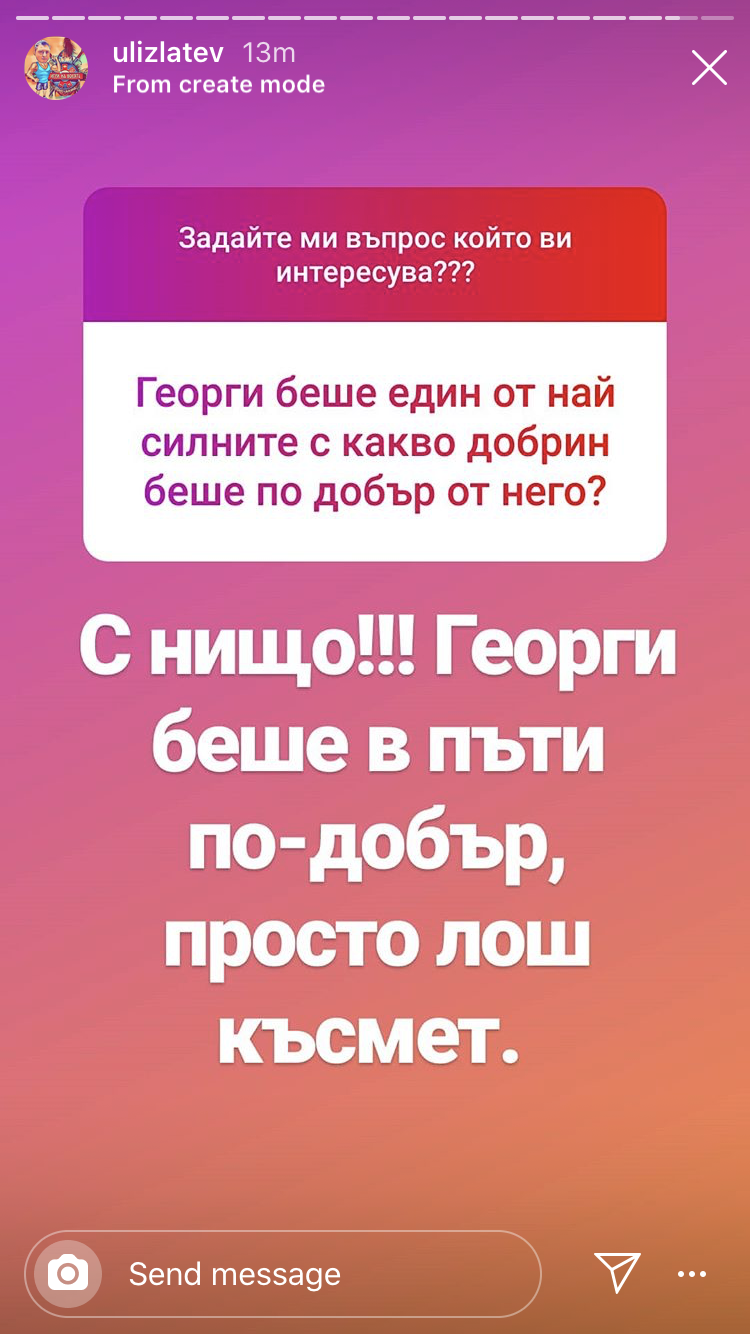 "Дорчето" хич не я/го коментирам, само постовете й/му. Написаното слово относно участниците. 😉 Наистина ми е чудно кой оперира с ИГ на г-н Панчев... 🙄 Астистентът му?! 🤔