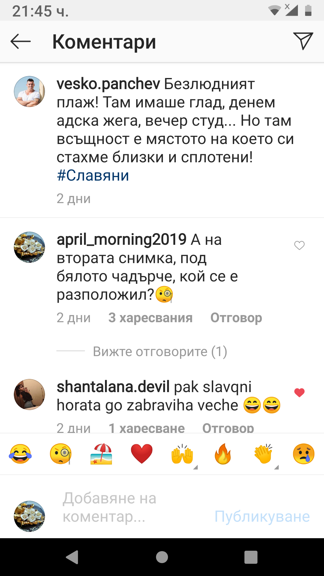 И аз се изненадах от това, че се чували. Писах това за лайкването, Пламен лайква всичко на всички, вкл. и на Ана-Мария, на Е/С, на Веско, на Бояна....абе на всички. С изключение на Юлиян. Може пък да има нещо, което не знаем, знам ли и аз....