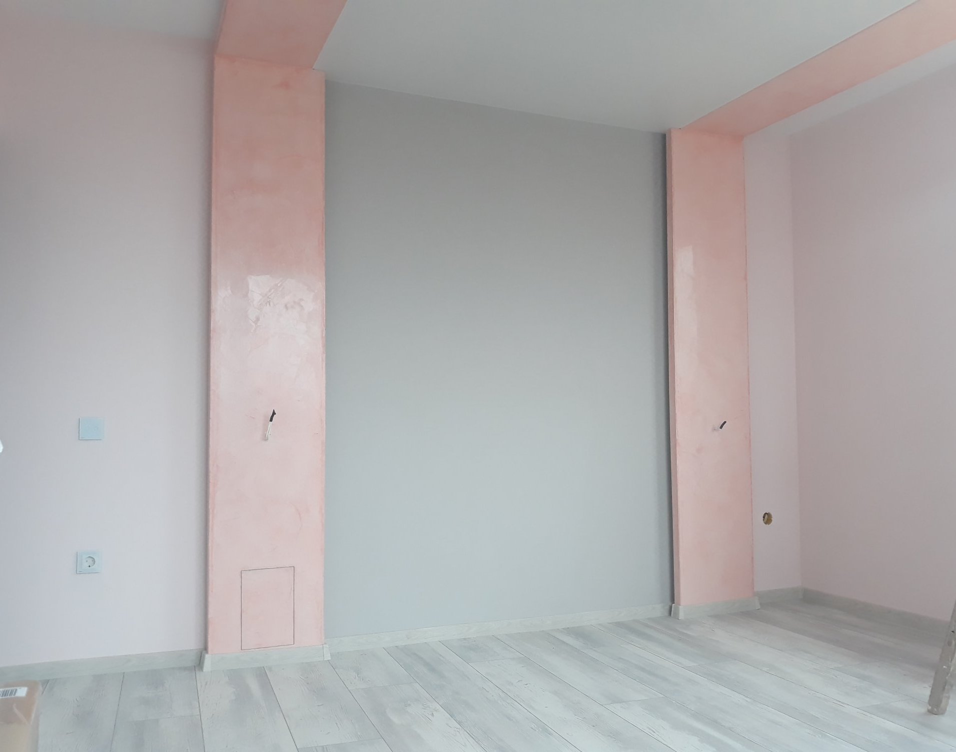 Мисля, че моментът е подходящ да покажа, какво се случи със онази стена, дето трябваше да е готова преди половин година, боядисана в пудра Simple Smile