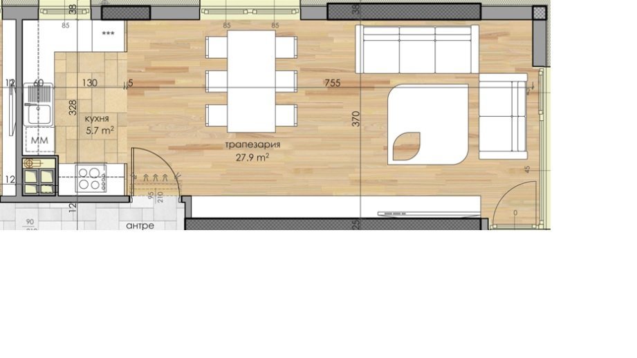 О наистина е добро, много рядко като влизаш кухнята остава зад вратата, обикновено влизаш в зоната кухня и след това в холната част. Браво, харесва ми!