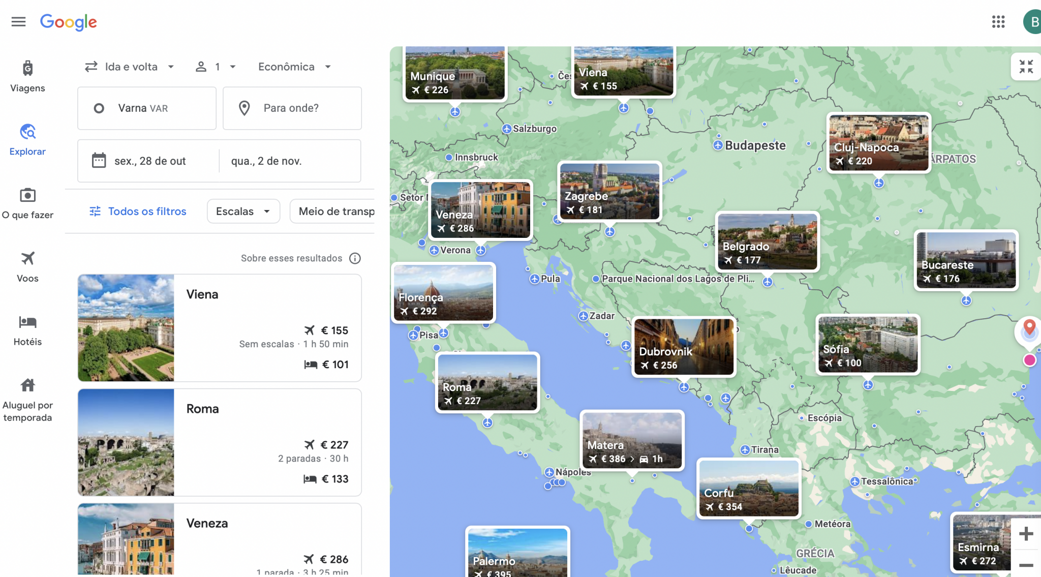 пак там има вариант Explore, където си давате дати и по картата гледате цените