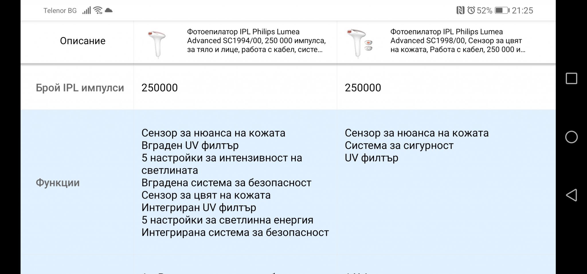 Набелязала съм си този https://www.emag.bg/fotoepilator-ipl-philips-lumea-advanced-250- … -00/pd/DTRC4DBBM/ тъй като прочетох, че повечето то вас го ползват. Има ли по-евтини, но надеждни варианти?