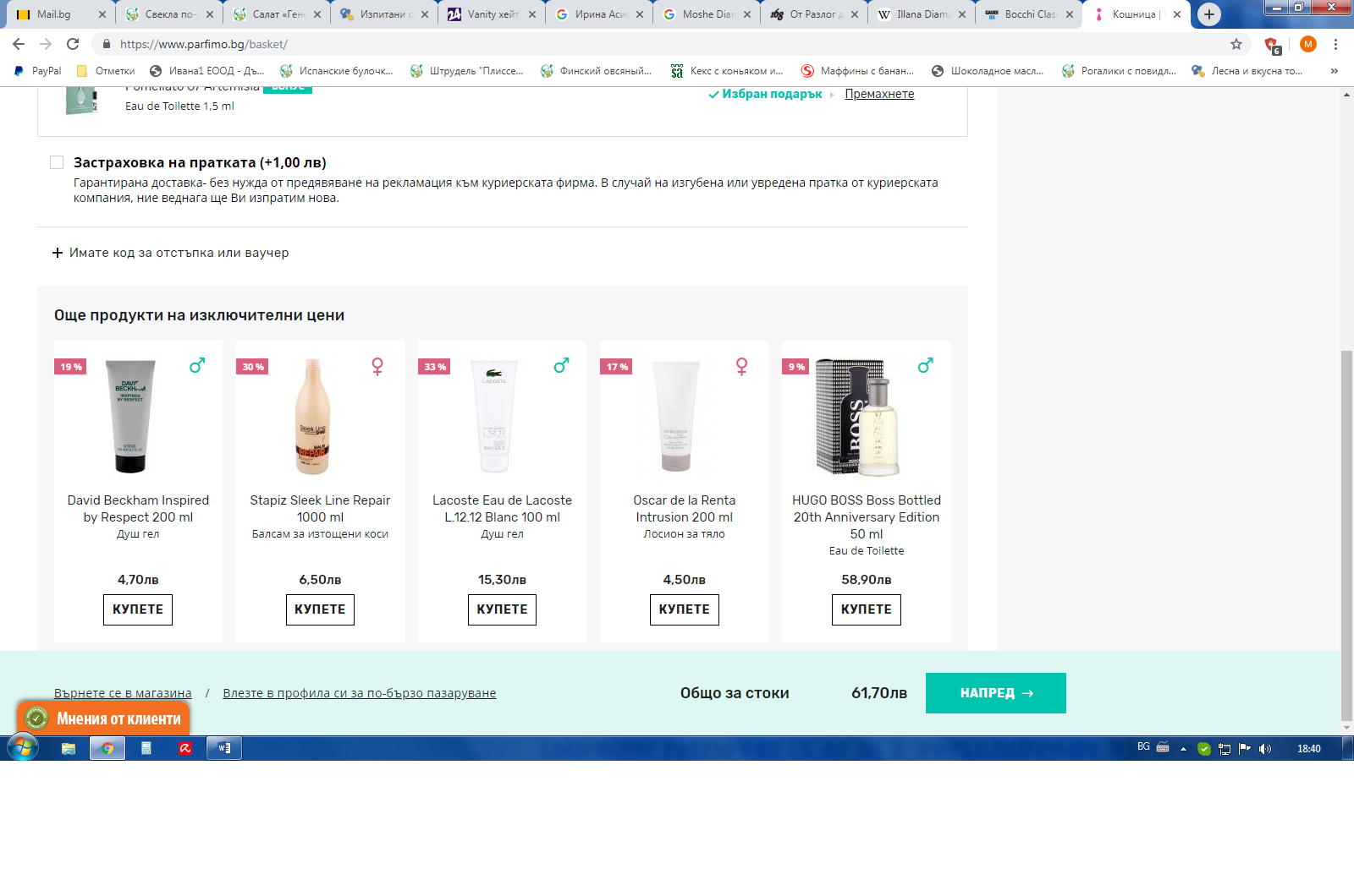 Под ЗАСТРАХОВКА НА ПРАТКАТА има с +Имате код за отстъпка или ваучер, кликваш на него, излиза прозорче и пишеш кода.