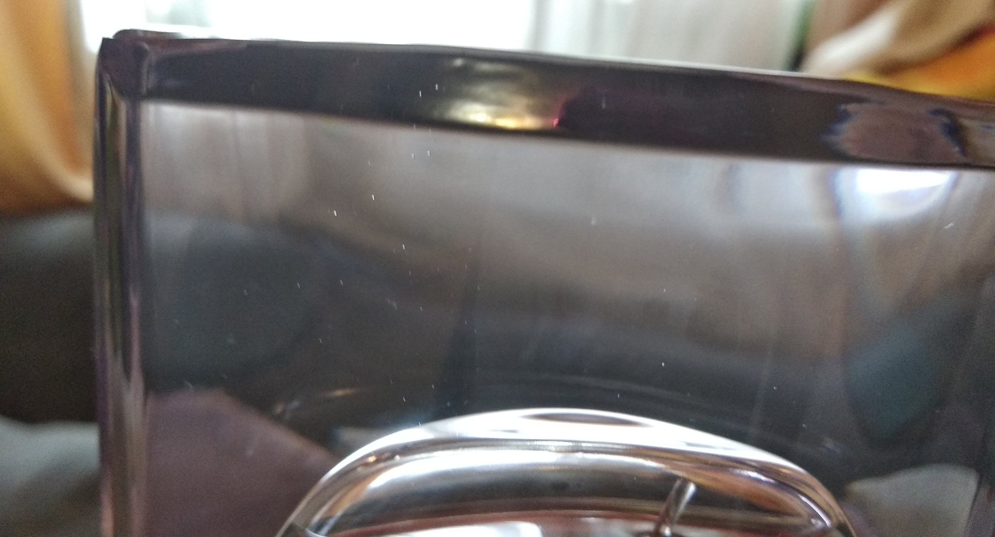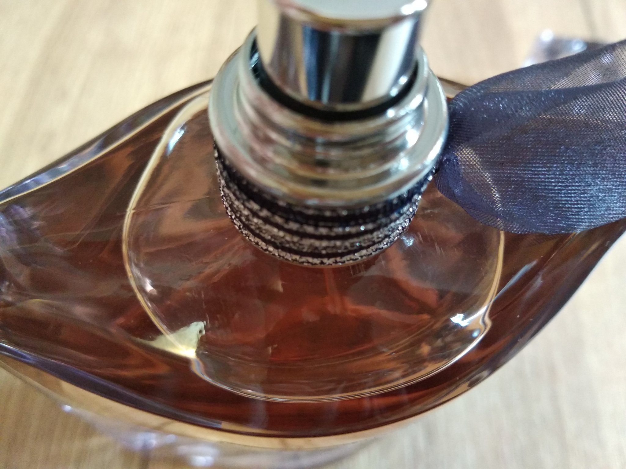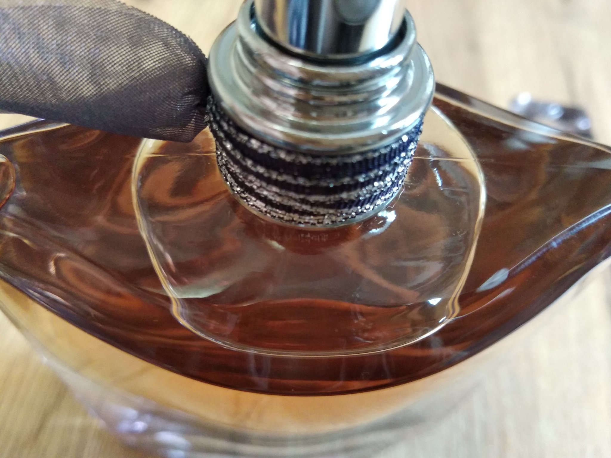 Здравейте! Аз идвам с казус и моля притежателите на La vie est belle intense за малко помощ. Веднага след пускането на кода от Елинор направих поръчка на тестер на парфюма заедно с още един селебрити парфюм. Звъннаха на следващия ден, за да ме попитат проблем ли е, че вторият идва от чуждестранен склад и ще се забави една седмица, отговорих, че нямам против и разговора приключи. След седмица ми звънят пак, за да кажат, че е пристигнал, но ЛВЕБ е тестер и идвал без кутия, дори и транспортна бяла. Много странно ми стана, но реших, че няма да бъда мнителна и вероятно транспортната кутия е скъсана, стара и затова не искат да я пратят. Вчера вечерта си взех поръчката, парфюмът беше добре опакован в бъбъл фолио, но нямаше празен ход и беше пръскано с него, тъй като на пулверизатора имаше миниатюрна капчица, която инстинктивно изтрих и забравих да снимам. Днес обаче реших да го разгледам на светлина и установих, че в течността плуват малки частички и едно влакно- прилича на косъмче от дреха. Иначе кода на парфюма е ок- произведен преди 3 години и някакви месеци. Сега стоя и се чудя на какво може да се дължи наличието на частици в течността, чела съм, че при старите парфюми могат да се появят такива частици, но въпросното влакно не виждам как може да попадне вътре. Направи ми впечатление, че и бутилката около гърлото е одраскана, не знам дали се вижда добре на снимките. Към дъното на вашите бутилки има ли малки балончета в стъклото?