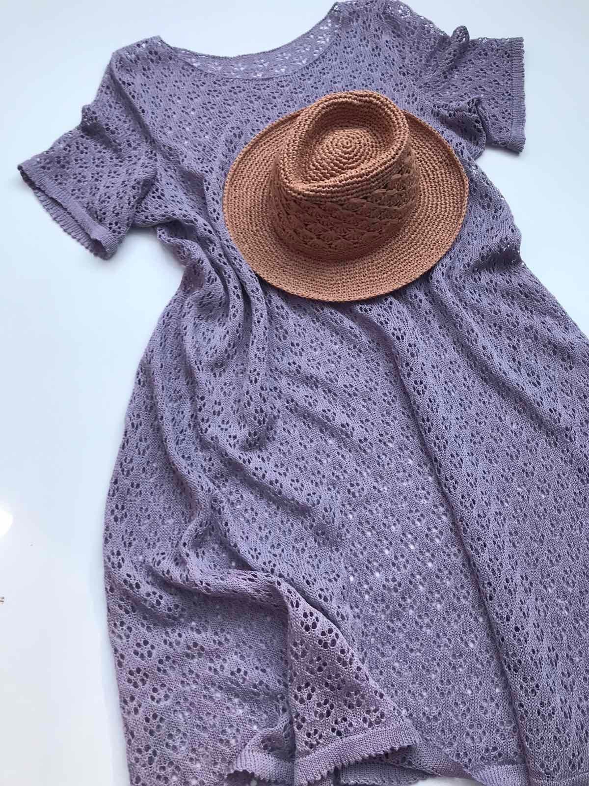 Роклята е от лен с малко процент нейлон, плетена на машина. Тази прежда купувах в магазин нишка ниточка. Там има и  бюджетни италиански прежди. Другите прежди от Галя.