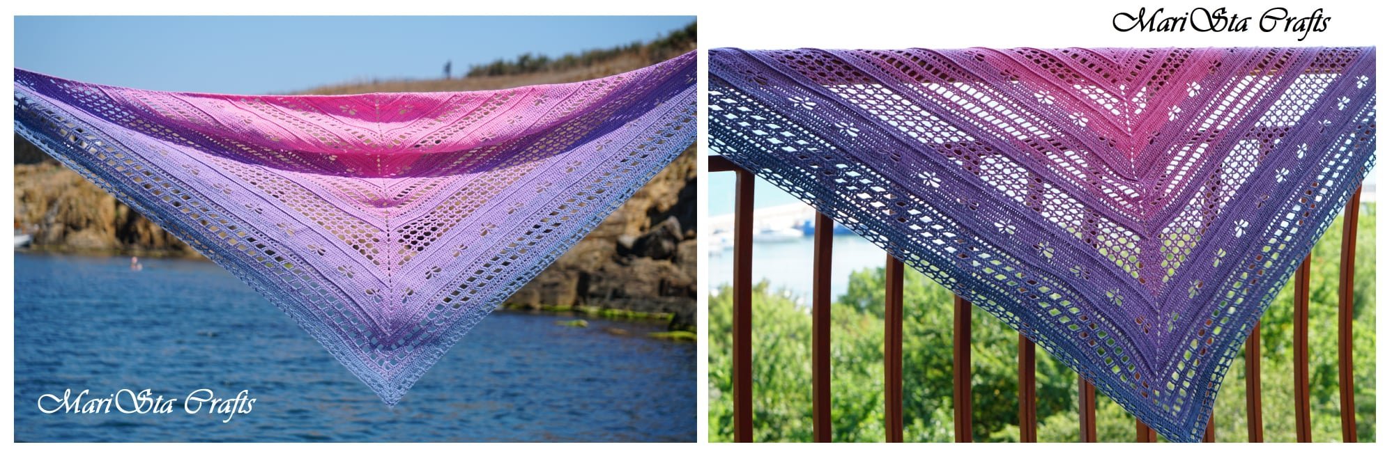 Това са последните ми два шала на кука. Сега плета още един триъгълен на кука, но толкова ми омръзна, че може и да го зарежа. Плете ми се на две или пет игли, разглеждам модели.