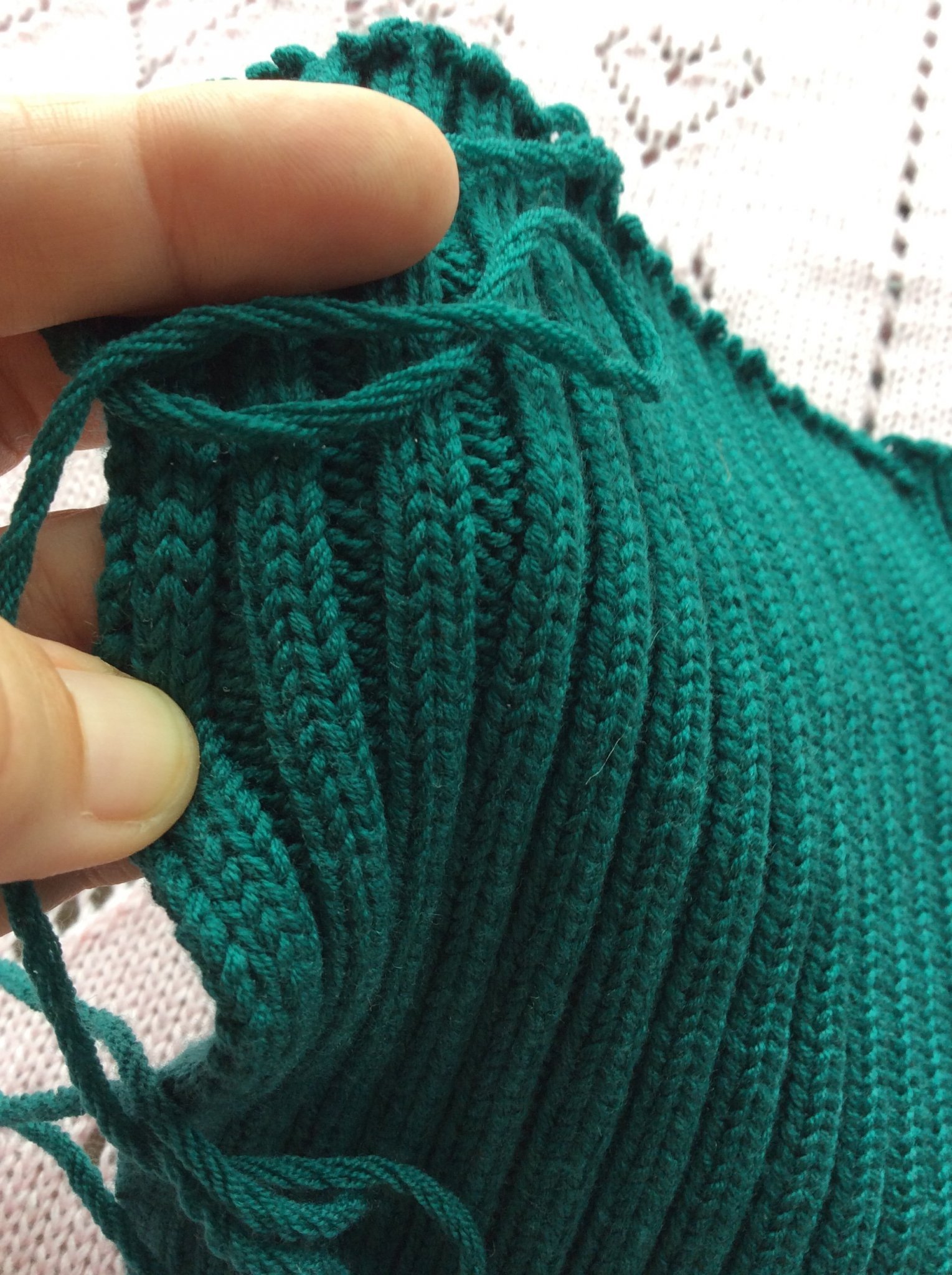 И когато накрая решиш да събереш останалите бримки, /колкото и да са те/, на един конец нанижи четните, на друг- нечетните и стегни всеки наниз поотделно. Така няма да получиш голяма дупка отгоре. /Не че ще изстинеш.../
