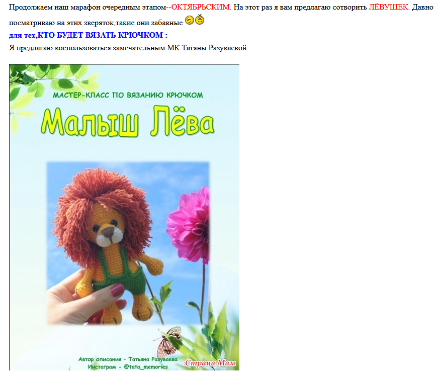 По принцип не се впечатлявам от плетени играчки, но лъвчето на Добри е с такивя хубави инструкции по картинка, че ми се прииска да го направя. Само с желанието ще си остана де, нямам нерви за такива дребни нещенца.