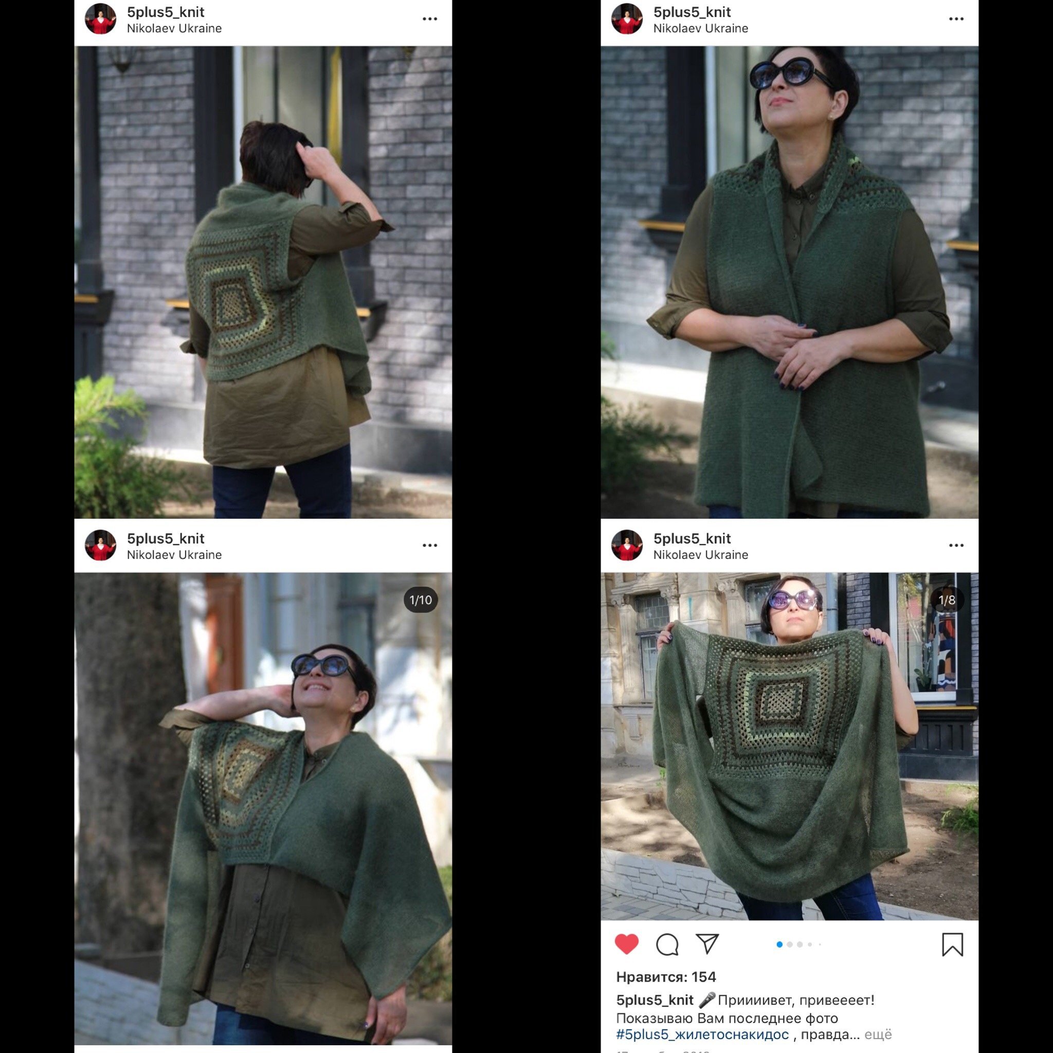 Хи-хи-хи, то затова е "трансформер". Единият път го обличаш през "ръкавите" (керемиденото и последната сива снимка) или главата през единия ръкав.