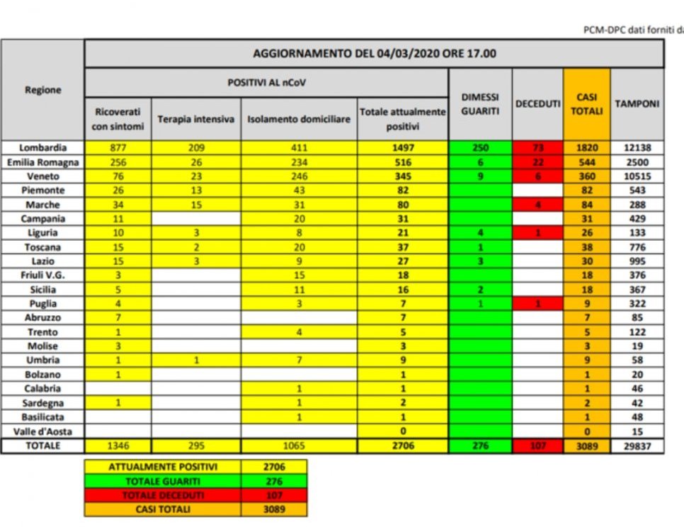 Италия 584 нови заболели, 28 нови починали. Общо 107 починали, 276 излекувани, в критично състояние 295.