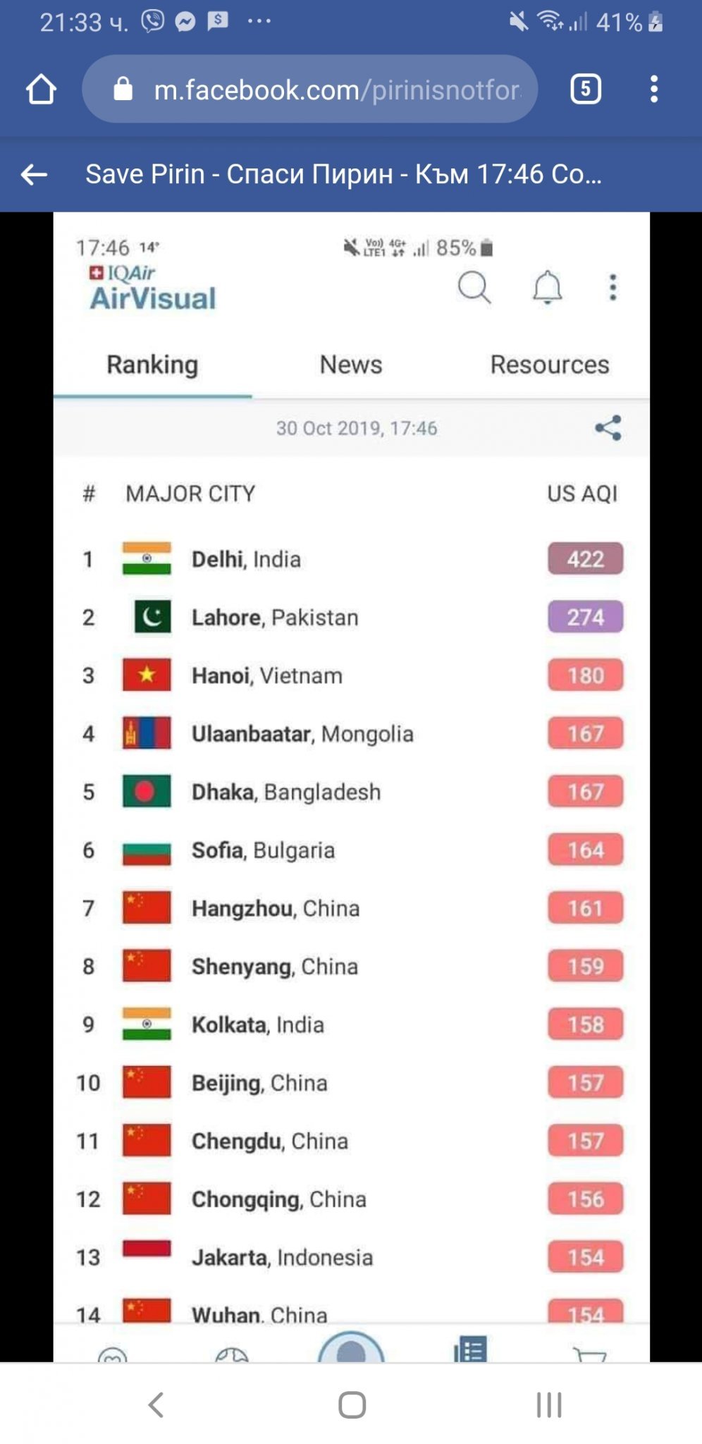 Според тези данни Пекин и Ухан са били далече в класацията по замърсяване на въздуха, дори София видиш ли ги минава, я да видим сега колко теца има Пекин и колко София, централите е първото нещо което проверих и шанса да е от тях е много малък, разберете го това, освен това Китай е взимал мерки за тия замърсявания и положението им доста се е подобрило, далеч не са първенци по замърсяване.