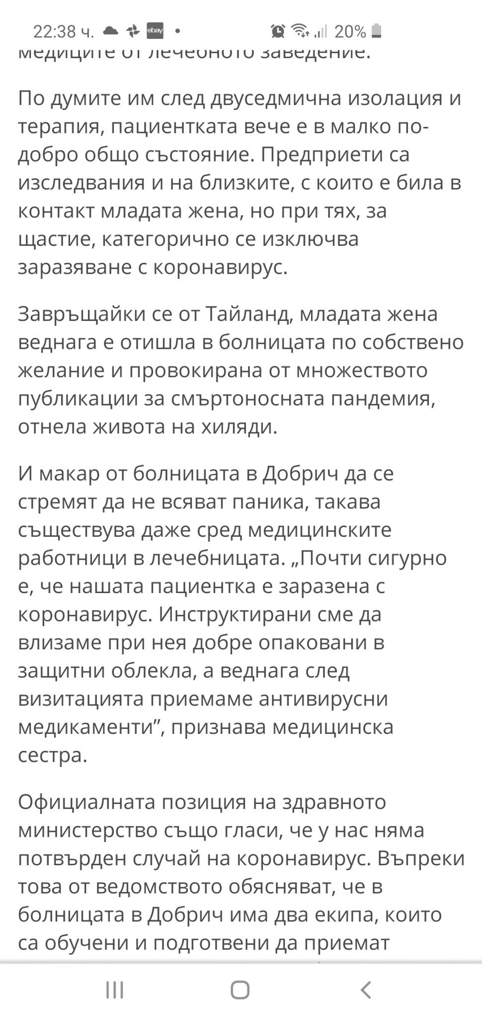 И на мен ми попадна такава статия, но мисля, че беше в Пик, сега не я намирам. Не можели нито да потвърдят, нито да отрекат, че жената имала вируса. Ако не е нещо фалшиво, това трябва да е същата пациентка от края на януари:
