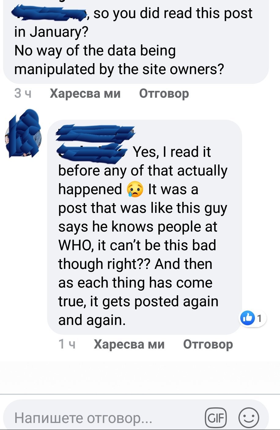 Изобщо не ми е успокоително това, че в България няма регистрирани случаи, при положение, че са тествали 20-на човека. Наздравици ще вдигам когато почнат да тестват повече.