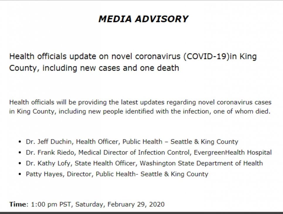 За момента няма такава. Public Health ще направят изявление за въпросния смъртен случай и новите случаи на заразени във Вашингтон.