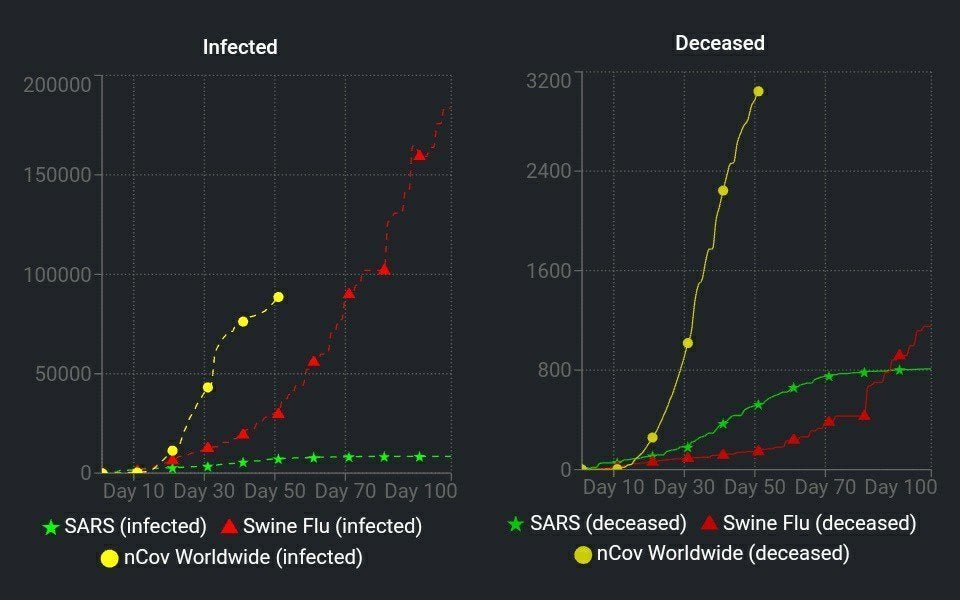 И защо се сравнява разпространението на вирус на 90 години с такъв, който е нов за човека? Да не говорим, че тези данни са удобно "отрязани" за период от 100 дни.