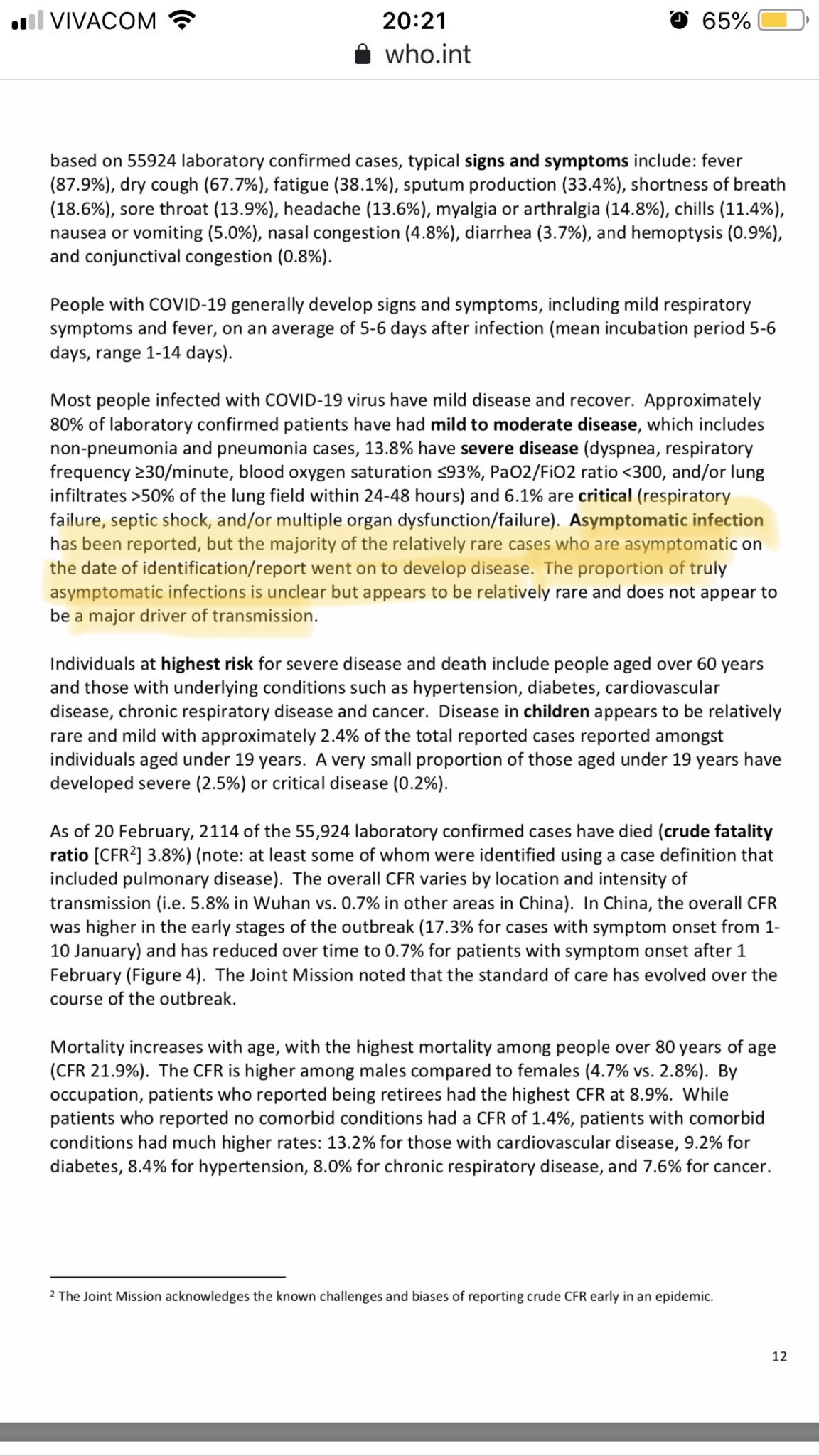 Което е явно опровергано от даймънд принцес твърдение. Имаше и статия за 24 асимптоматични в азиатска държава, които са проследени- едва 20% от откритите асимптоматични са развили впоследствие минимални симптоми. Доказано обаче поне един е успял да зарази цялото си семейство.