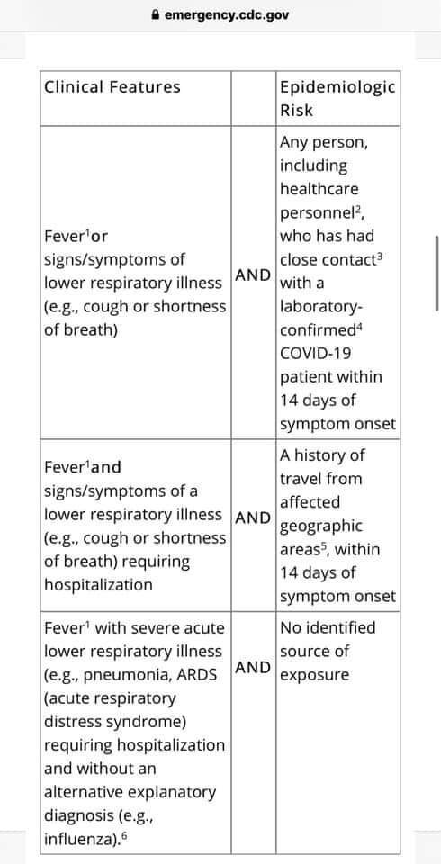 Тук е списъкът на условията на CDC, USA за условията, на които трябва да отговаряш, за да получиш тестване: