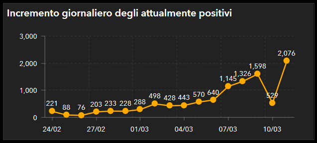 За Италия вчера има регистрирани 529 случая, което е нереално след 1598 от предния ден. Така че, да, днешната бройка включва и от вчера. Забележката гласи, че данните от Ломбардия не са цялостни, а това е най-засегнатият регион.