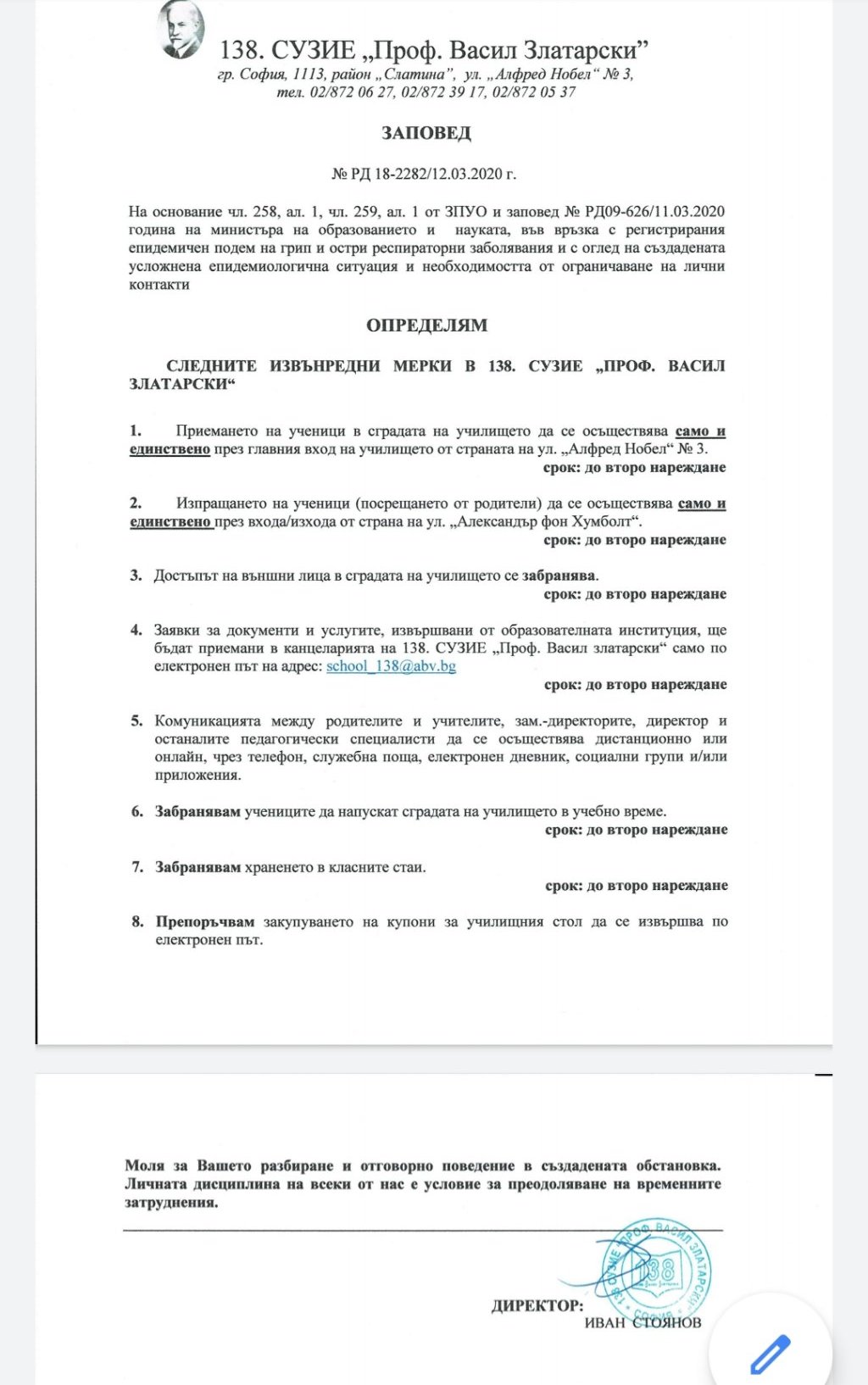 Аз съм написала същото - че ако имаш симптоми да си останеш вкъщи, както и да си миеш ръцете, това са мерките засега.