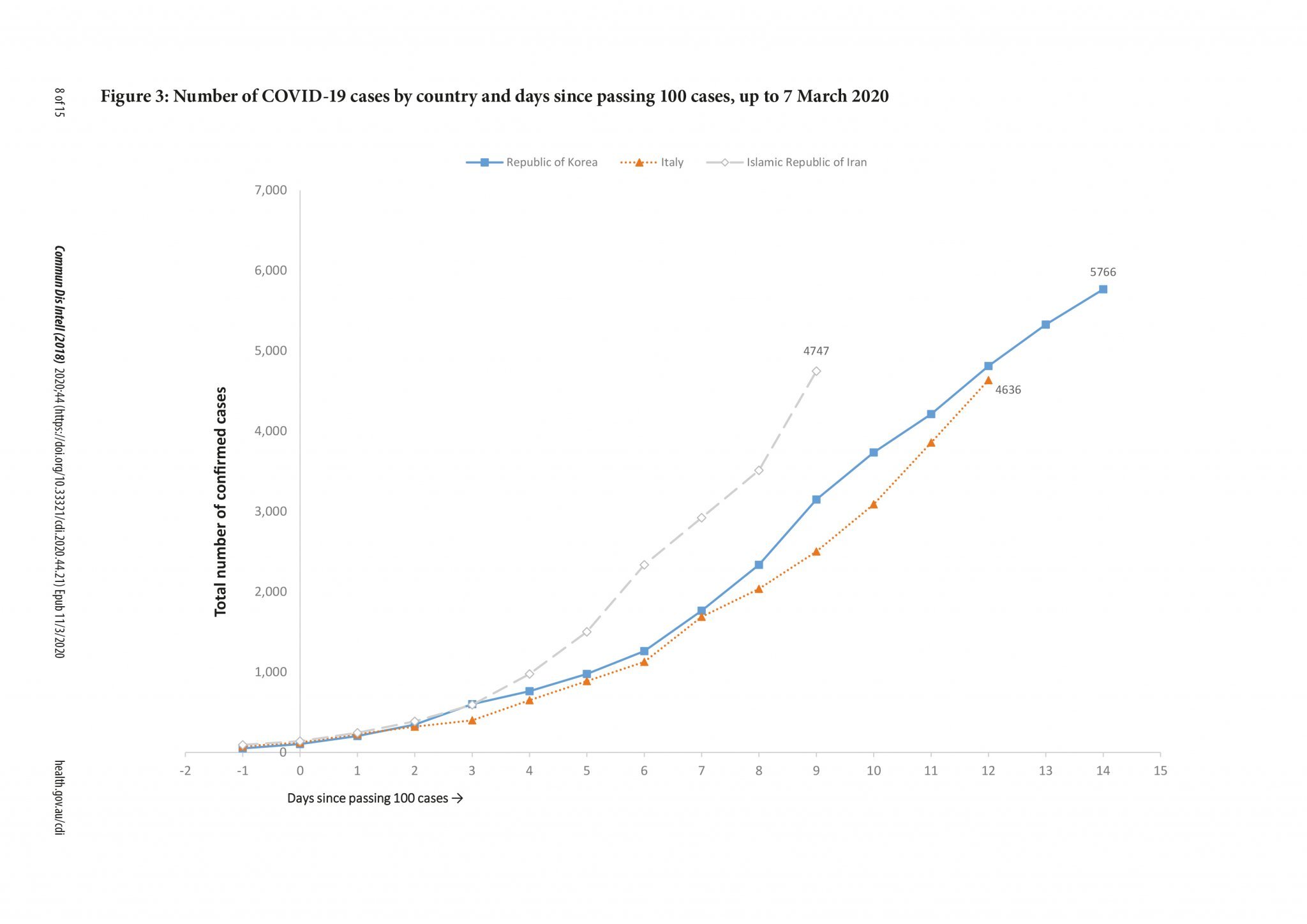 Вижда се с просто око, че Иран са достигнали случаите на Италия за много по-малко време, а знаем, че това само диагностицираните с тест.