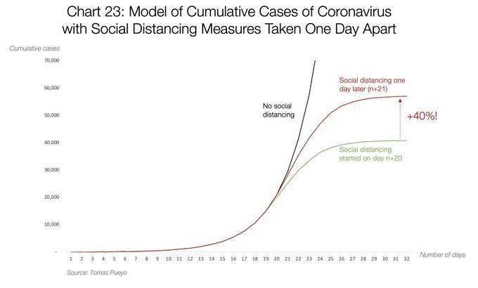 In this theoretical model that resembles loosely Hubei, waiting one more day creates 40% more cases! So, maybe, if the Hubei authorities had declared the lockdown on 1/22 instead of 1/23, they might have reduced the number of cases by a staggering 20k.
