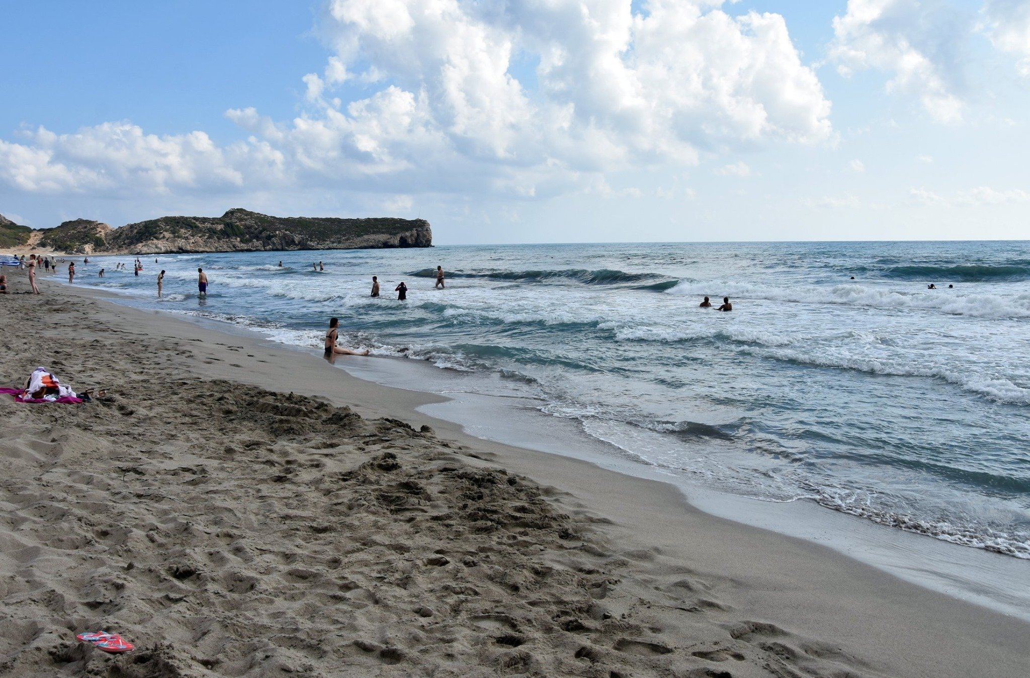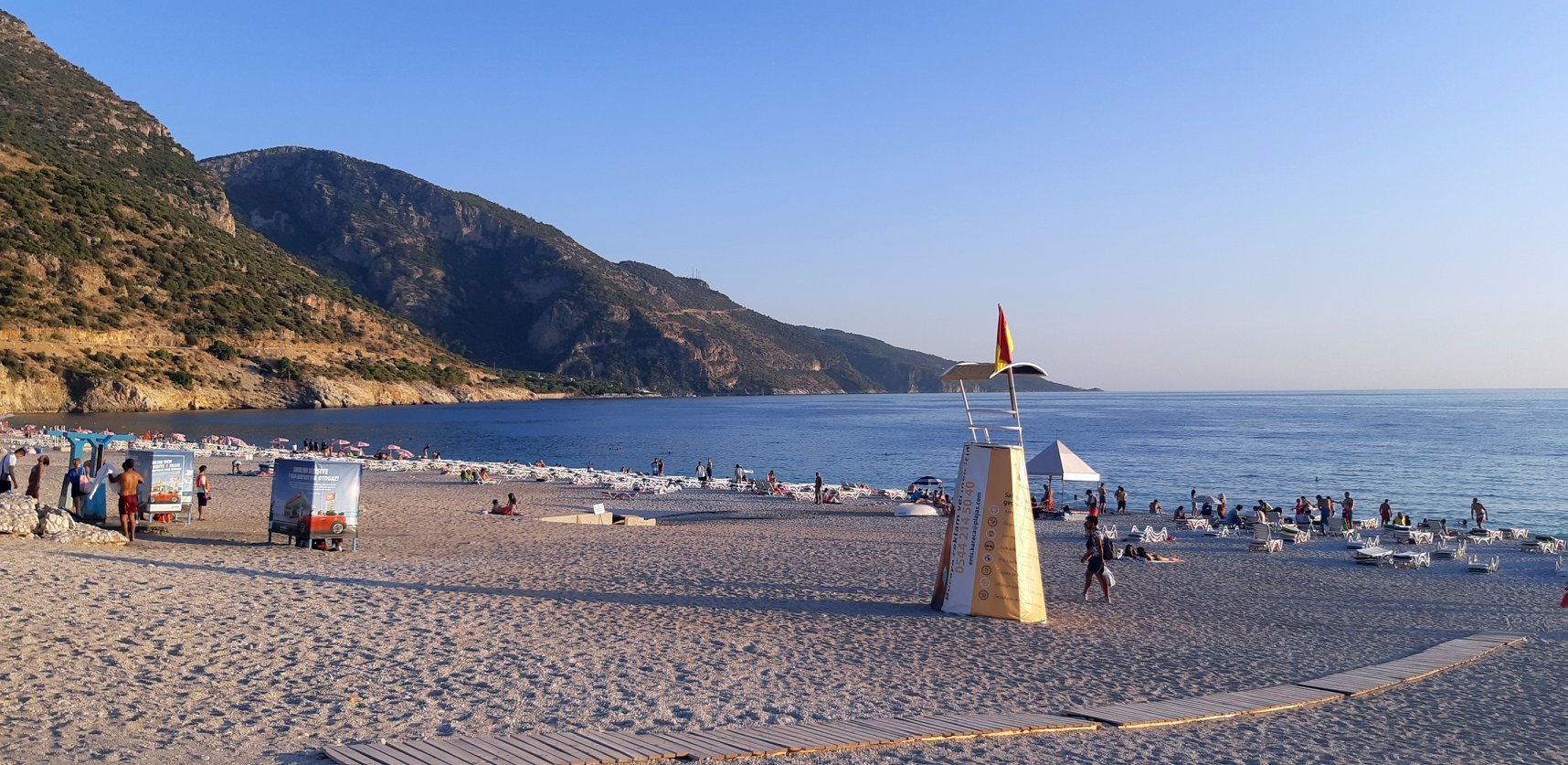 На Патара има малко шезлонги, бар, съблекални/душове/тоалетна. Нямаше много хора, водата по-топла от тази в Олюдениз. Флагът – червен. Спасителят си седи на вишката и на никого не свири. Морето не дърпа навътре. Влязох малко над коляното и вълните ме събориха два пъти.