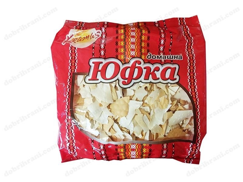 Това на твоите снимки ми прилича на макарони. В нета видях, че това е юфка, прилича на натрошени кори за баница. Наистина не знаех, че така изглежда.