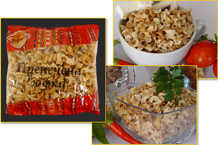 Както вече е написано, това, което е като начупени кори за баница, даже и сега го продават като "Домашна юфка". Отделно си е макароненото изделие "Юфка" - едни такива къдравички. Ей тези препеченките са много вкусни: