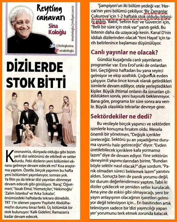 благодаря за информацията и за добрата новина, че може би ще имаме серия и следващата седмица. Да, вярно, че продължиха да снимат миналия юни, но нали тогава още я нямаше Назан, а сега тя влиза като героиня. И си мисля, че може би преди карантината са снимали освен сегашните й появявания, така и само с нея, като после да компилират кадрите за бъдещи серии.