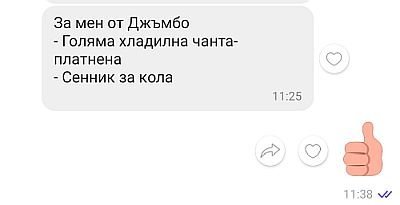 Както всички останали, напълнихме един чувал с "много, много нужни неща", а мъжът ми прати съобщение само с 2 скромни желания и понеже ме познава ги написа отделно, да няма грешка.