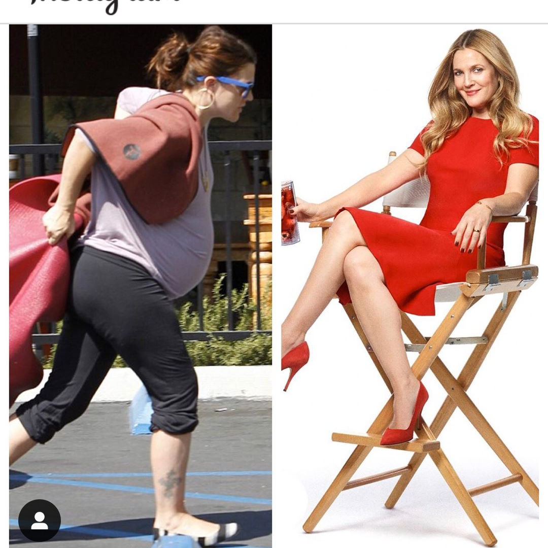 На първата снимка Дрю Баримор не е ли бременна все пак? Какво има да демонстрира, че е качила килограми.